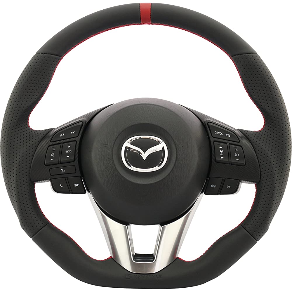 KENSTYLE (Kenstyle) Original Steering MA08 Mazda Demio (DJ series) 2014/9 ~ 2016/10 Black Leather/Red Line (Red Stitch) All Nappa Leather