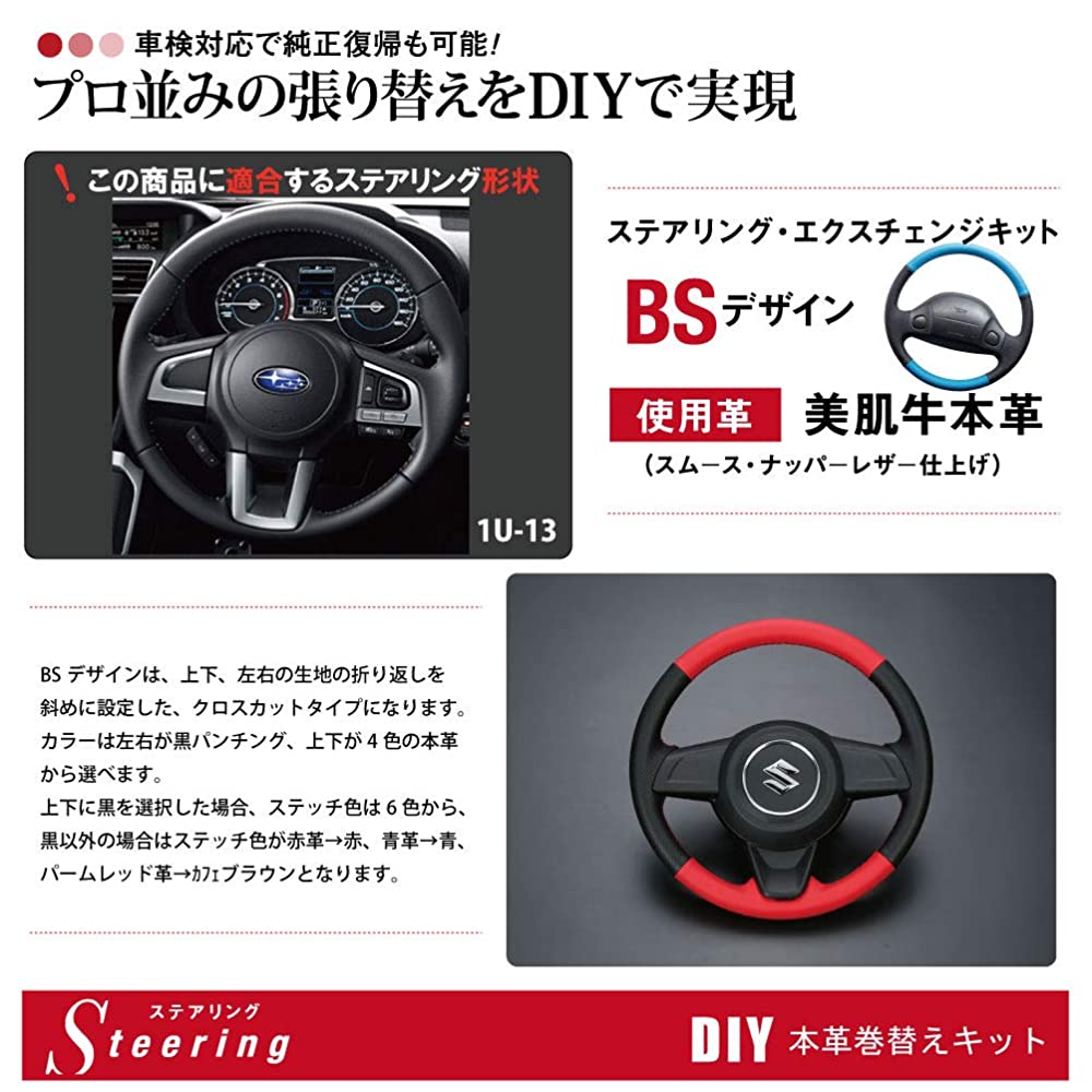 Legacy Outback (BS) Impreza XV (GP) Forester (SJ) DIY Steering Genuine Leather Replacement Kit (BS Design) [1BS1U13] Left and Right Black Leather Punching x Top and Bottom Black Leather x Orange Stitching