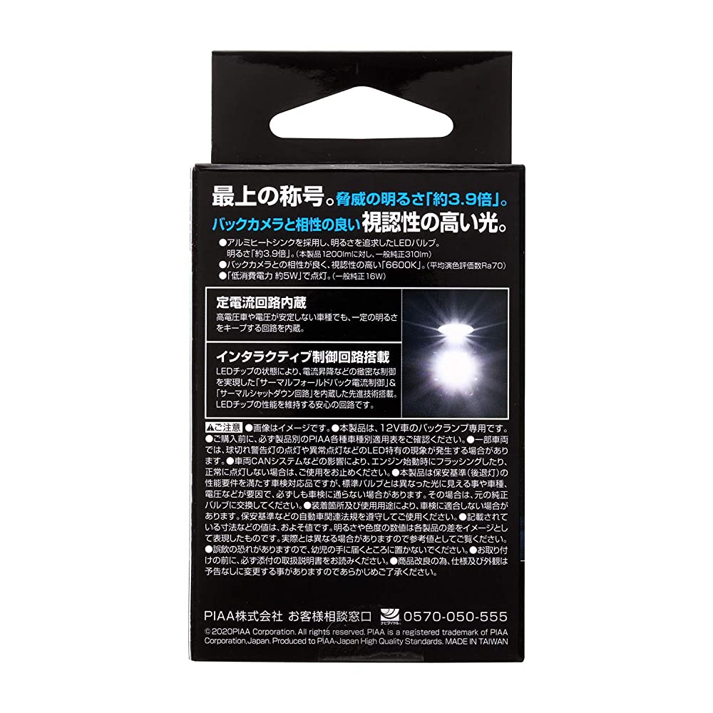 PIAA LEW124 Backup Bulb, LED, 6,600K, Ultra High Illumination, 1,200 lm, 12 V, 5 W, Road Transport Vehicle Act Compliant, T16 Constant Current & Interactive Control Circuit, Built-in Omnidirectional Diffusion 5 Chips, Pack of 1