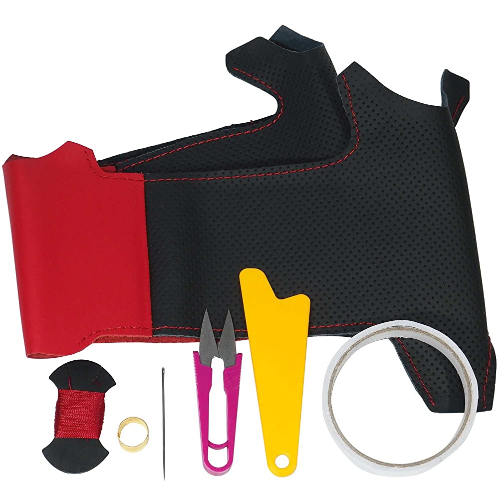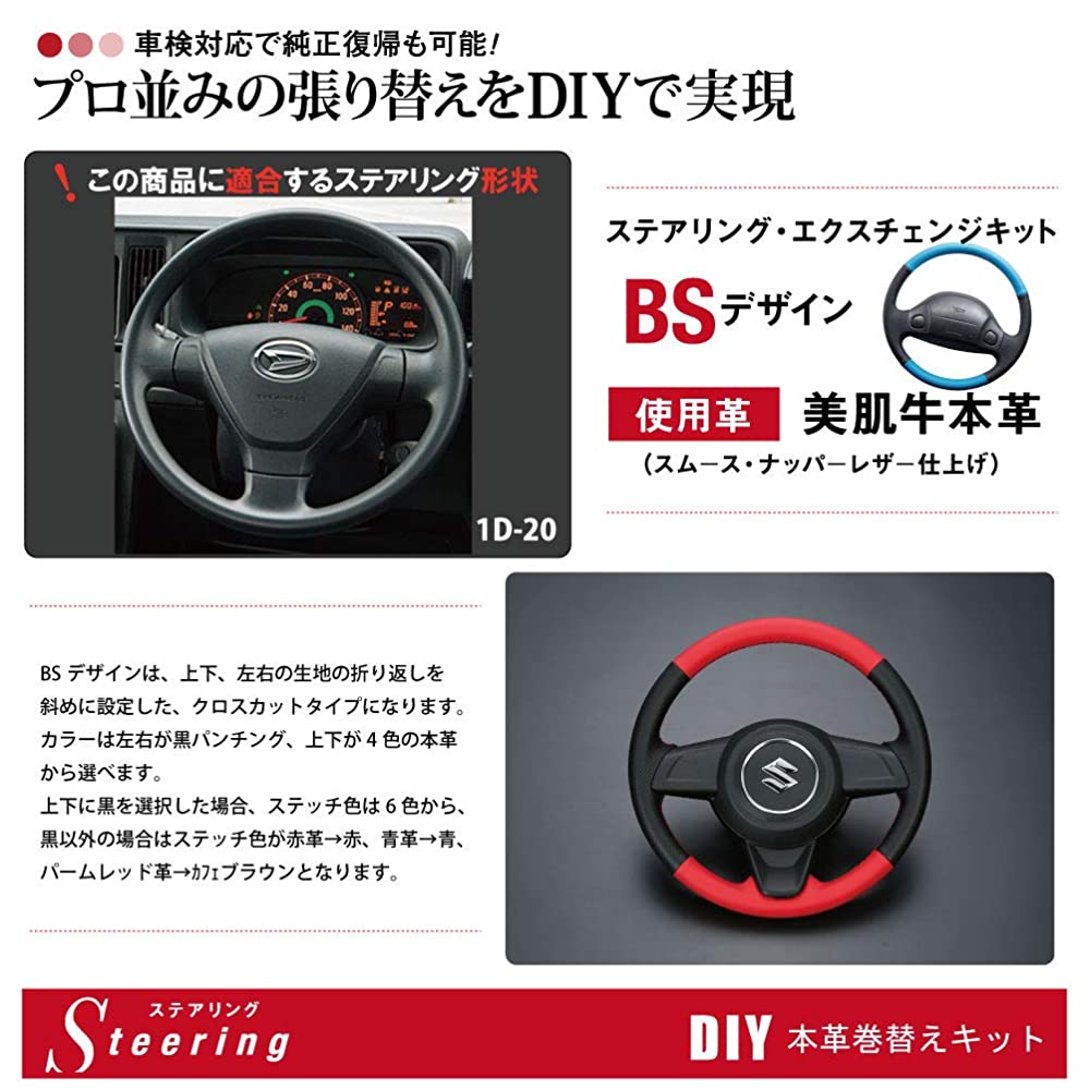 Tricolore EX BS 350 Series Miraise, Red and Black Leather X Red Stitching, 1D-20, DIY Steering Genuine Leather Replacement Kit, 1BS1D20B2R1R
