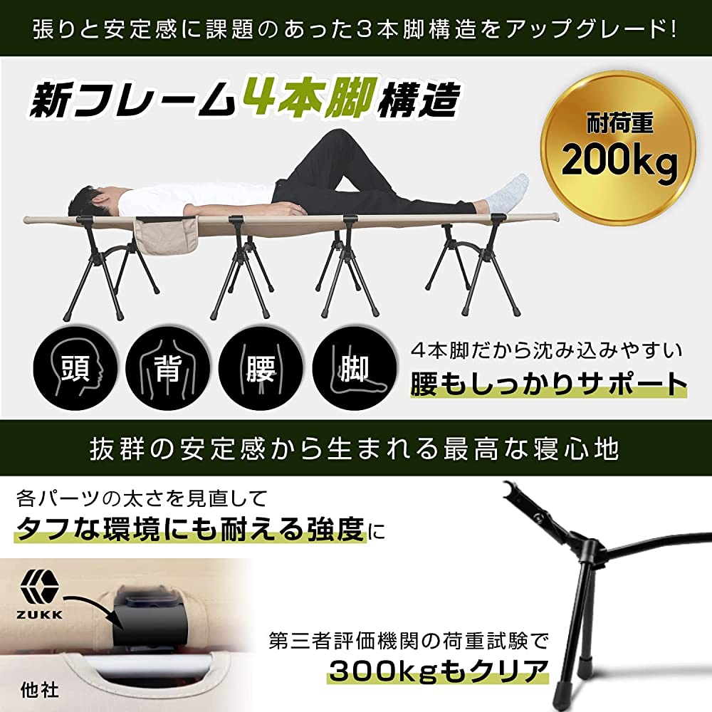 ZUKK 2WAY Cot load capacity 200kg Camp bed High durable folding high/low switching