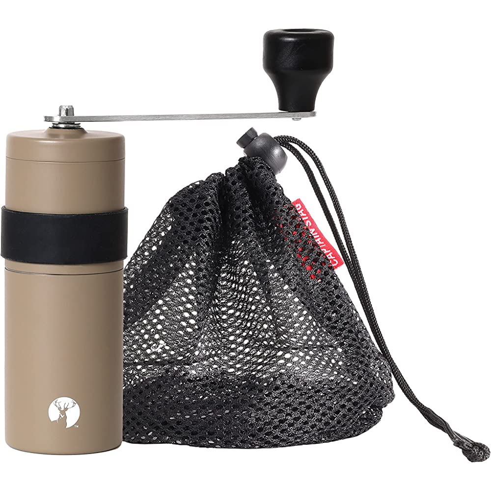 Captain Stag UW-3547/UW-3548 Coffee Mill, Made in Japan, Ceramic Blade, Small, 18-8 Stainless Steel, Mesh Case