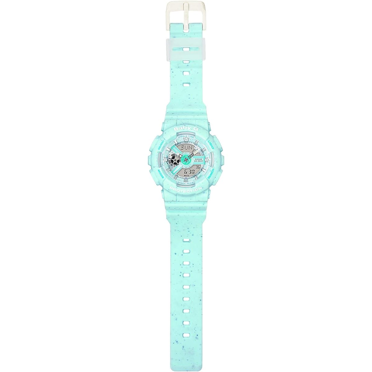 "Ice Cream Pastel Series" has a pop design based on pastel colors. Based on the BA-110, which is popular for its men's-like form, the lineup includes two models inspired by popular ice cream flavors. There are two colors available: mint green with a chocolate mint ice cream motif and pink with a strawberry ice cream motif. It will give your spring casual fashion a bright and glamorous look. The band and bezel use mixed color molding technology to reproduce the texture of ice cream. BABY-G will add color to your spring look. ●Shockproof structure ●10 ATM waterproof function *Cannot be used for scuba diving. ●World time: Time display in 48 cities around the world (29 time zones, daylight saving time setting function) + UTC (coordinated universal time) ●Stopwatch (1/100 second, 24-hour meter, with split) ●Timer (set unit: 1 minute) , Maximum set: 24 hours, measured in 1 second increments) ●5 time alarms (only one with snooze function)・Time signal ●Full automatic calendar ●12/24 time format display switching ●Operation sound ON/OFF switching function ●LED Light (with afterglow function) Set contents: Main unit, package / drawstring bag that can be reused as a pouch, instruction manual, warranty card / included with instruction manual