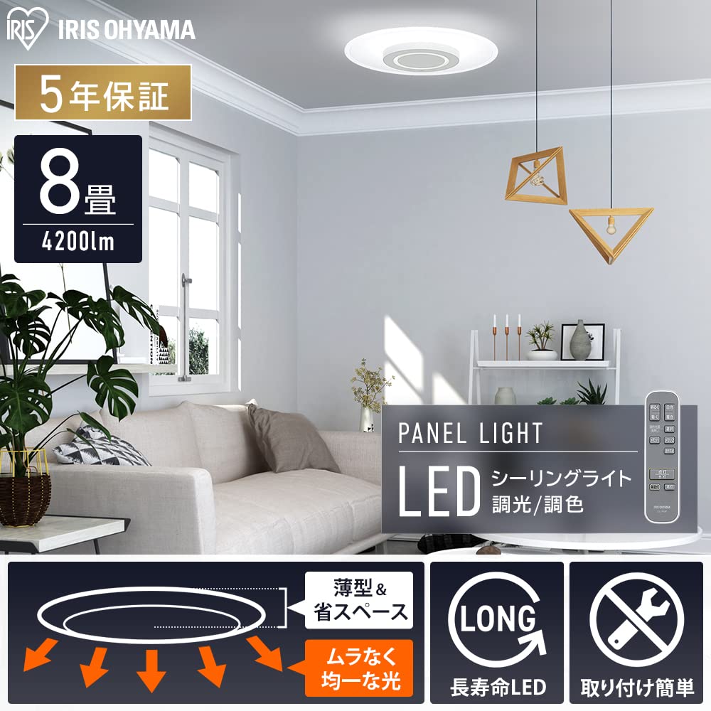 Iris Ohyama CEA-A08DLP LED Ceiling Light, Stylish, Light Guide Board, Lighting, Dimmable, Toning, 163.2 sq ft (8 Tatami Mats), 4,200 lm, Remote Control Included, Thin, Energy Saving, Easy Installation