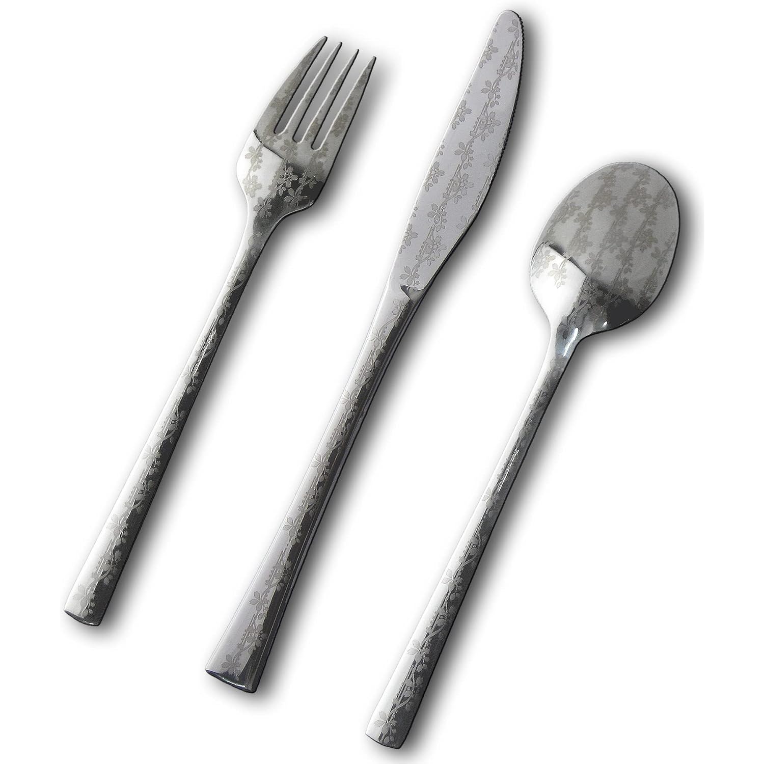 - Size: Dinner Knife Total Length 8.3 inches (211 mm) x Maximum Width 0.7 inches (19 mm) x Height 0.3 inches (7 mm) / Dinner Spoon (Total Length 7.4 inches (186 mm) x Maximum Width 1.5 inches (39 mm) x Height 0.9 inches (24 mm) / Dinner Fork Length 7.0.9 inches (1 inches (1 inches (1