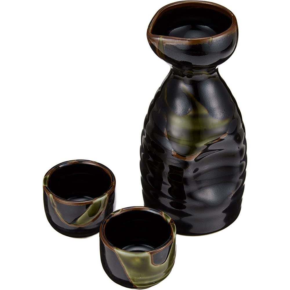 Tenmoku olivé Sink No. 2 Clove & Raise Set of 2 Glass Pottery Mino Burn