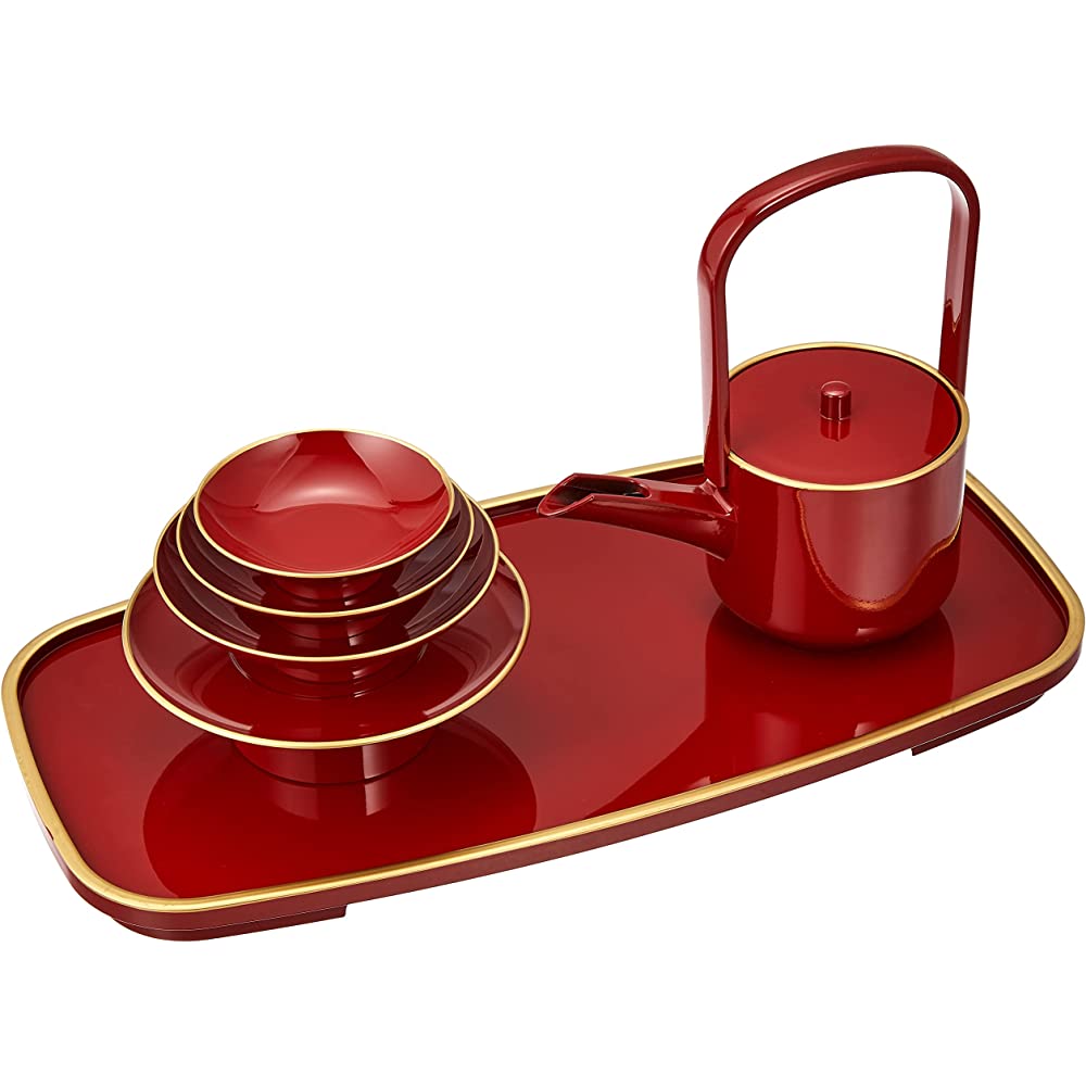 Yamanaka Painted Vermilion Coating Oban Sake Bowl Red Gold Coating 3867