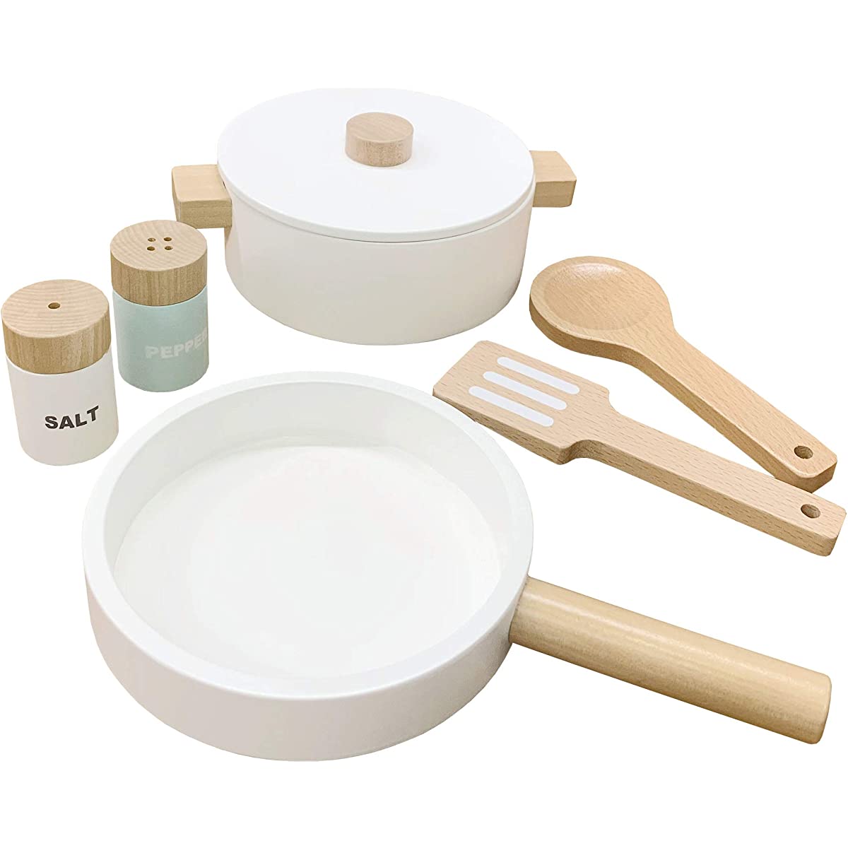 Alex Sanga Crisp Play House, Wooden, Magnet, Food Sanitation Inspection Compliant, Kitchen, Stove, Fish Grill, Play and Clean Up, Educational Toy (Pot Frying Pan Set, PP)