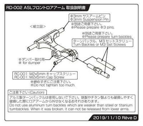 ASL RD-002 Front Lower Arm, Left and Right Set, Suspin Hole Diameter: 0.1 inches (3 mm), For RWD Drift Cars