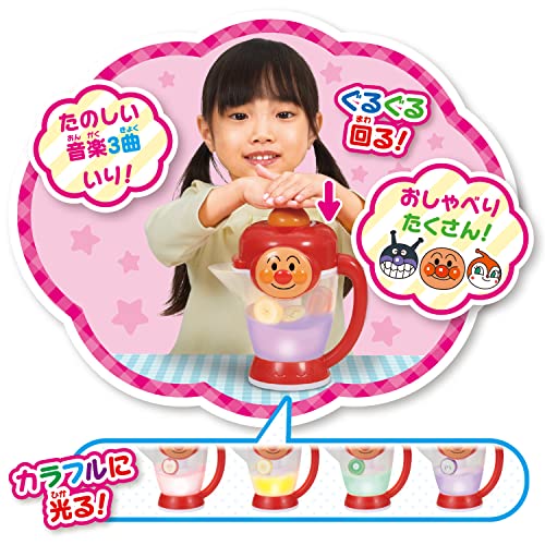 Product introduction "Yes! Fruit from Anpanman. Hacky! Zenbu mix! Introducing Anpanman Chat Mixer. Mixer toy with light, sound and rotation When you fill with fruits or snacks, Anpanman will read and light up. When you press the button, the unit rotates with fun music and allows you to enjoy juice building and playing. (Everything other than those included with this product is sold separately. ) [Set Contents] Mixer body: 1 Juice Strainers ... 8 Cup: 2 Tray... 1 Stand: 1 [Batteries] Requires 3 AAA batteries (sold separately). Safety Warnings N/A