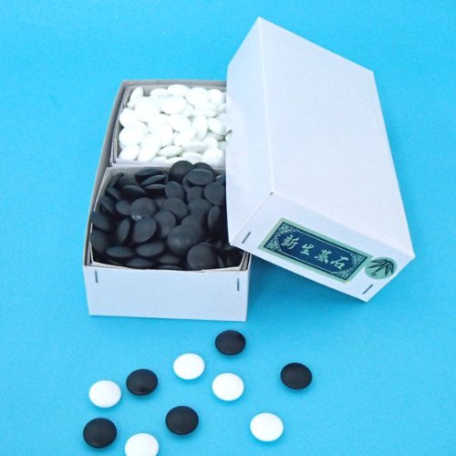 Treat yourself or go lovers to it! Feel serious with this footed go board. Shinkaya Go Board: Size: Approx. 16.5 x 18.1 inches (42 x 46 cm), Thickness: Approx. 2.4 inches (60 mm), New Desktop Board with Connected Feet Bamboo. Go Stone: Hard Glass: New Bamboo, Thickness: Approximately 9mm Set of 180 White Stones and 181 Black Stones Go chest: Muted Wood Grain Plastic Large