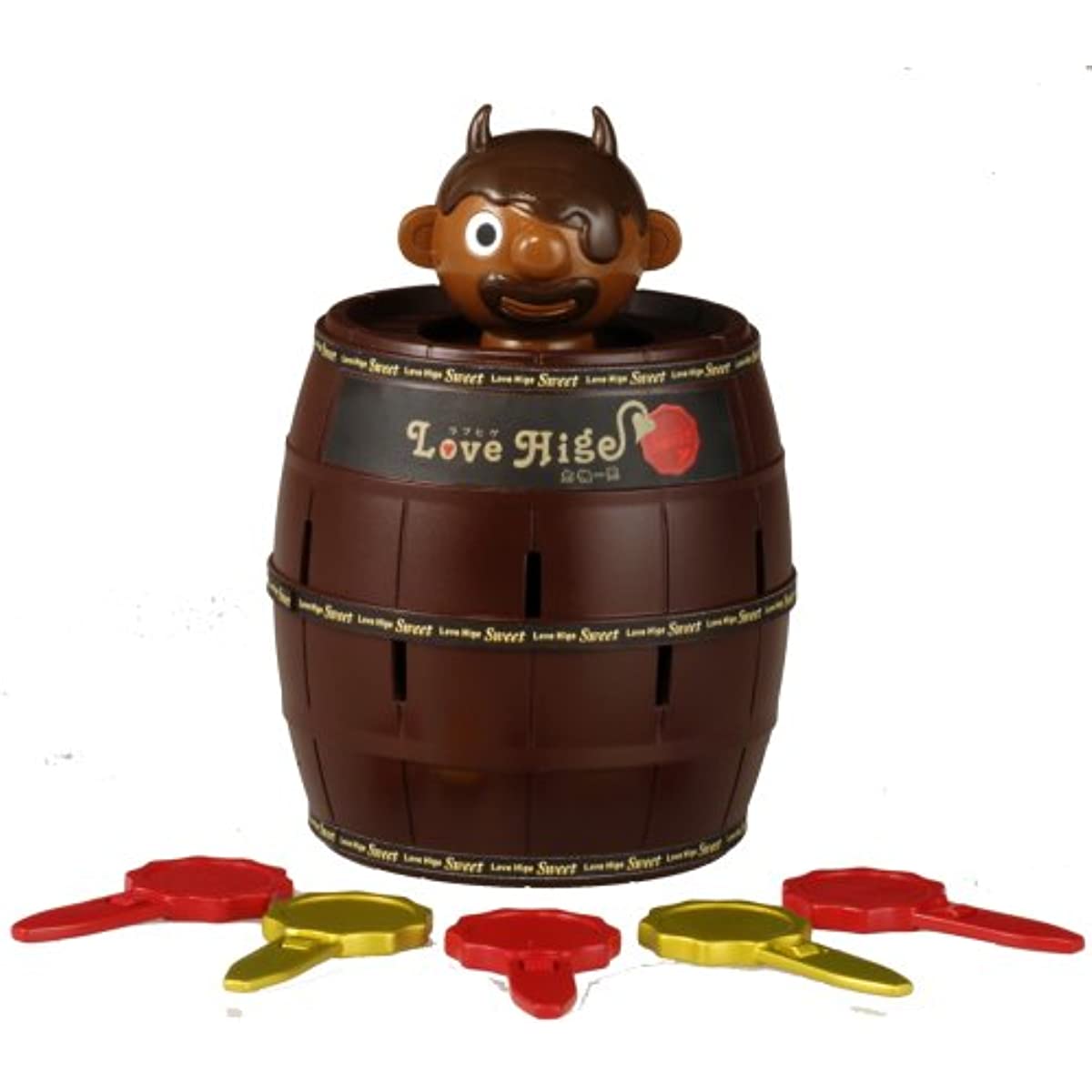 A special stick (sword) is inserted in order into the barrel containing the Chocohige-kun doll. When the Chocohige-kun doll jumps out, follow the command of the sword that jumped out.