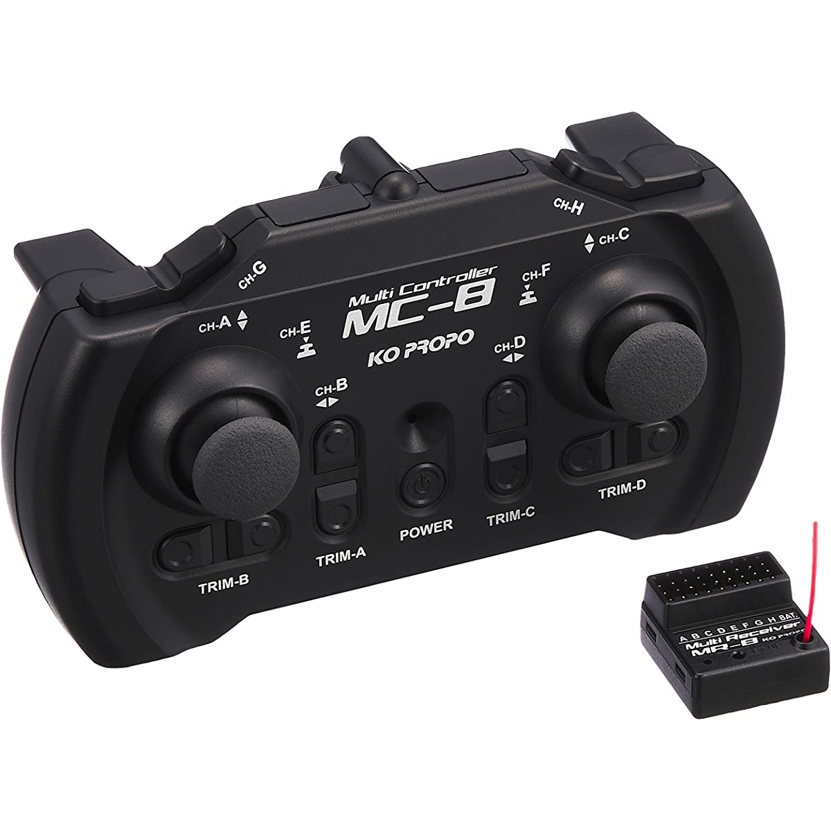 Introducing the MC-8 multi-controller that is fun with 8 ch! The "MC-8" is a multi-controller that supports 8 channels. Operates up to 8 servos, ESC, gear boxes, etc. Not only is it compatible with RC cars, but it can also be used with a wide variety of models from simple machines like cars to robot with a lot of drives, such as tanks, heavy machines, and craft robots. user's idea! A multi-controller that is easy to use and has been carefully designed to fit children and adults, so it feels like a game controller. Sold Separately: 4 x AAA batteries. Includes a dedicated MR-8 receiver. 8 is a receiver for MC-8. The signal format output from the MR-8 is common to what is used in traditional RC car devices, and the KO PROPO's servo, ESC and other RC equipment in the complete kit are designed to be used This product requires a power supply to operate, but the product does not include fuels, batteries, batteries, chargers, etc. (Set Contents) Multi-controller MC-8 x 1, Multi-receiver MR-8 x 1.