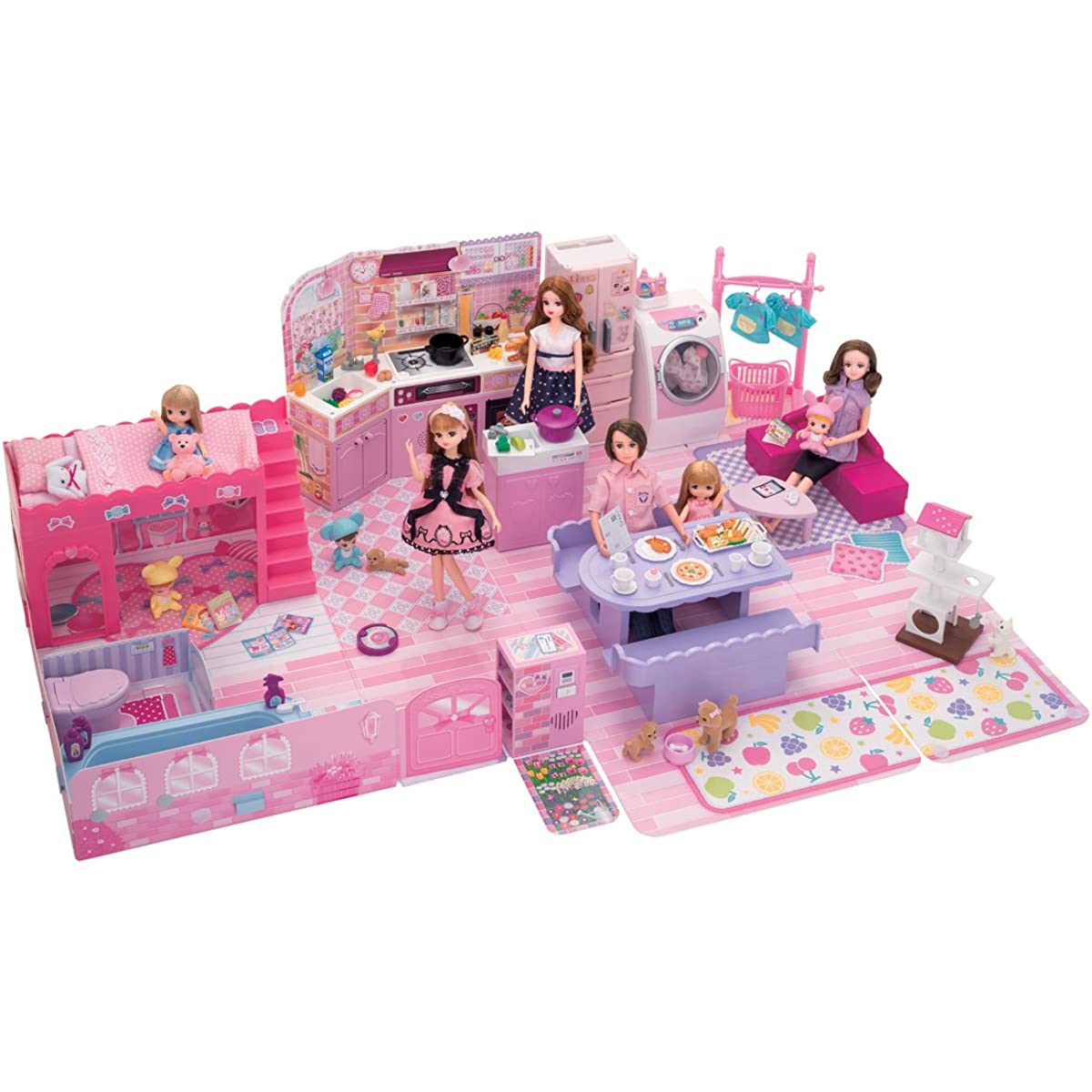 Ricca-chan's definitive version is renewed. The chime sound at the front door will enhance pretend play. An all-in-one set that includes furniture for your home in the spacious Licca-chan family, such as the kitchen, bunk bed, bath Compact when closed, easy to store. Play with dolls and accessories for even more fun! There is a chime pong sound on the front door. Set Contents: Main box (with rivets), partition wall (1 ), bunk bed (1), toilet (1), bath (1), low table (1), dining table (1), sofa (1), entrance unit (1), kitchen unit (1).