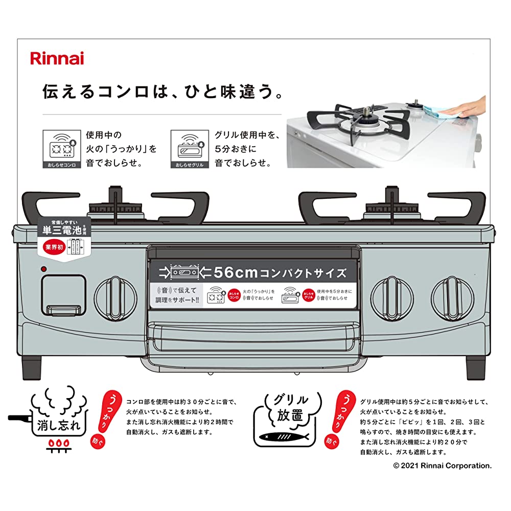 Rinnai KG35NGRL/13A Gas Table, For City Gas 12A and 13A, Width: Approx. 22.0 inches (56 cm), Single-Sided Grill, Left High Heat Power, Sky Gray