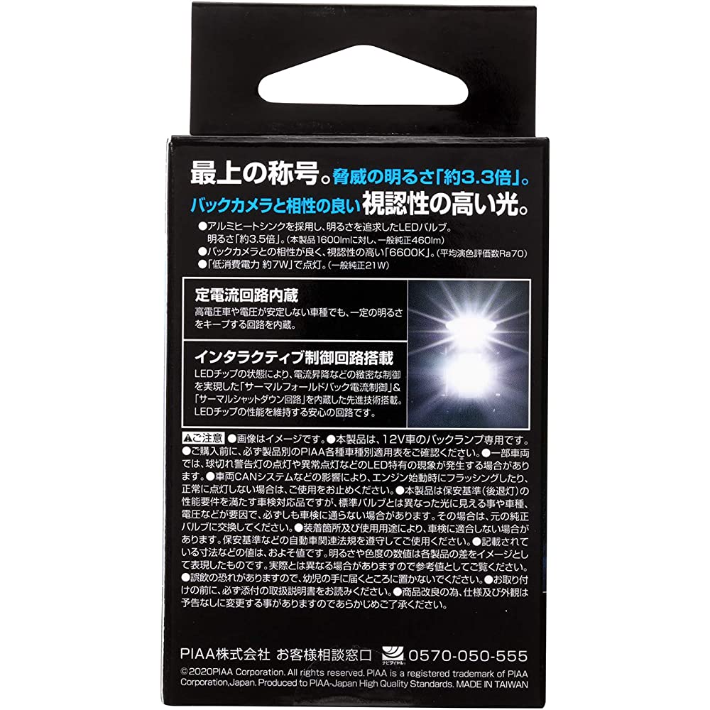 PIAA Backup Valve for backup LED 6600K Realizes ultra -high illuminance 1600LM 12V 7W vehicle inspection T20 fixed current & interactive control circuit built -in/all directional spread 5 chip 2 years warranty 1 piece Lew123