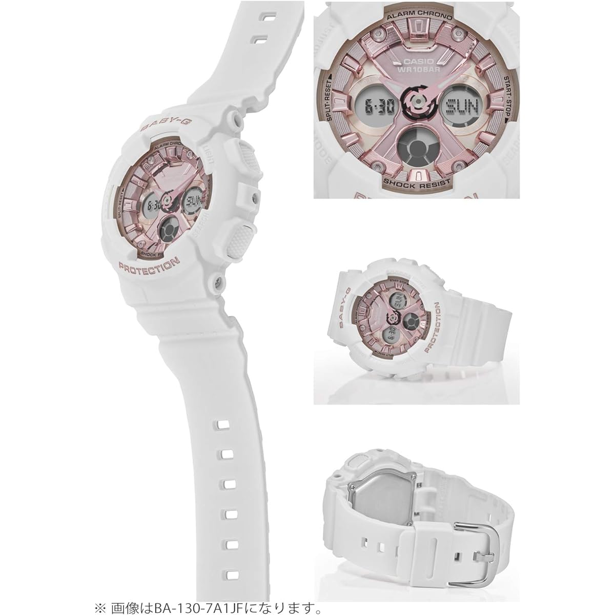 BABY-G, a casual watch for active women, now has a model that is suitable for street fashion. The new BA-130 has a cool big case and men's-like design. The model is based on white and pink, and the face parts are painted with metallic colors to add a gorgeous shine. The black model has a calm one-tone finish, and the face design has a matte and simple texture. The combination of men's-like design and feminine texture is a model that elevates street fashion. Introducing a cool model that you can enjoy matching with your outfit. This is the pink model of BA-130. ●Shockproof structure ●10 ATM waterproof function ●World time: 48 cities around the world (29 time zones, daylight saving time setting function included) + UTC (Coordinated Universal Time) time display ●Stopwatch (1/100 second, 24-hour meter, with split clock) ) ●Timer (set unit: 1 minute, maximum set: 24 hours, measured in 1 second increments) ●5 time alarms (only one with snooze function), time signal ●Full automatic calendar ●12/24 time format display switching ● Operation sound ON/OFF switching function ● LED light (with afterglow function) Brand introduction BABY-G is a casual women's watch brand born from G-SHOCK for active women. It has a shock-resistant structure that is resistant to shock and vibration, and is waterproof (over 10 atmospheres), making it safe for work around water or water sports, making it not only cute but also extremely practical.