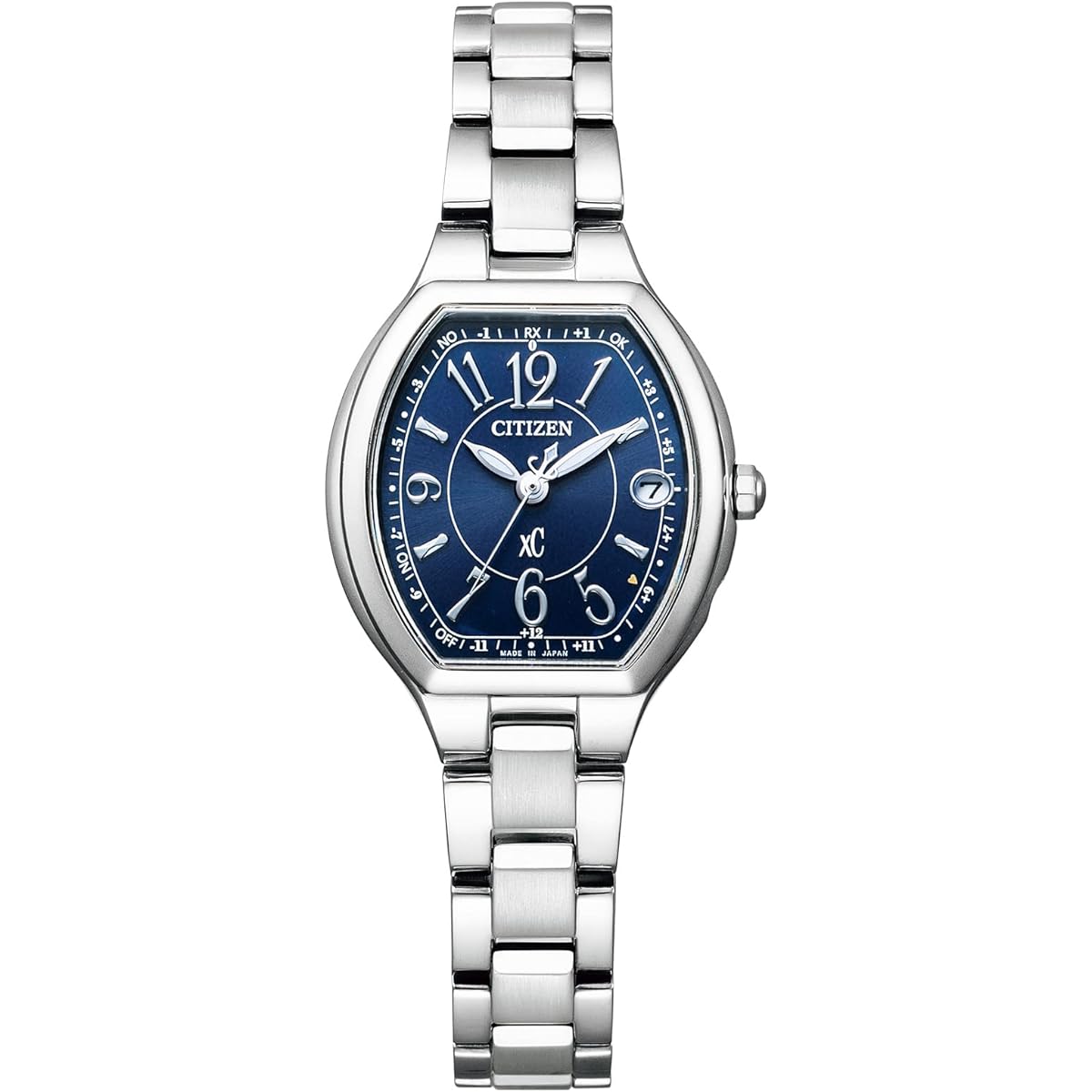 - The popular tonneau-shaped case model equipped with Happy Flight is now available in an intelligent and refreshing navy color. - Popular rounded tonneau-shaped case. - The beautiful shine of eternal platinum and the navy dial create an intelligent, mature and refreshing look. - The index uses an original Arabic font with a stylish design. It is both easy to see and adorable.・The TYO position has a gold heart as a focal point, adding an accent. Brand IntroductionCitizen Kanojo Cross Sea supports women who are looking ahead.