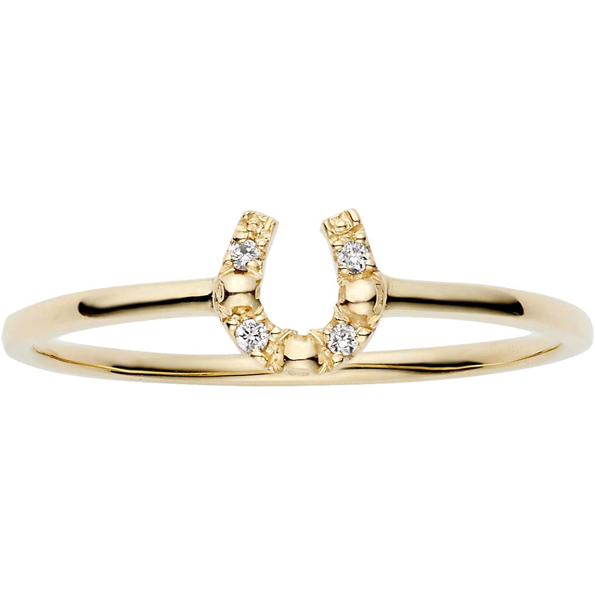 K10 yellow gold, diamond 0.010 ct Height: approx. 5.0mm Horseshoe motif ring with 4 diamonds *Resizing possible (up to +1-1) Accessories: Box