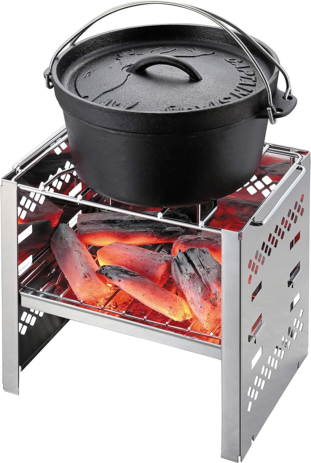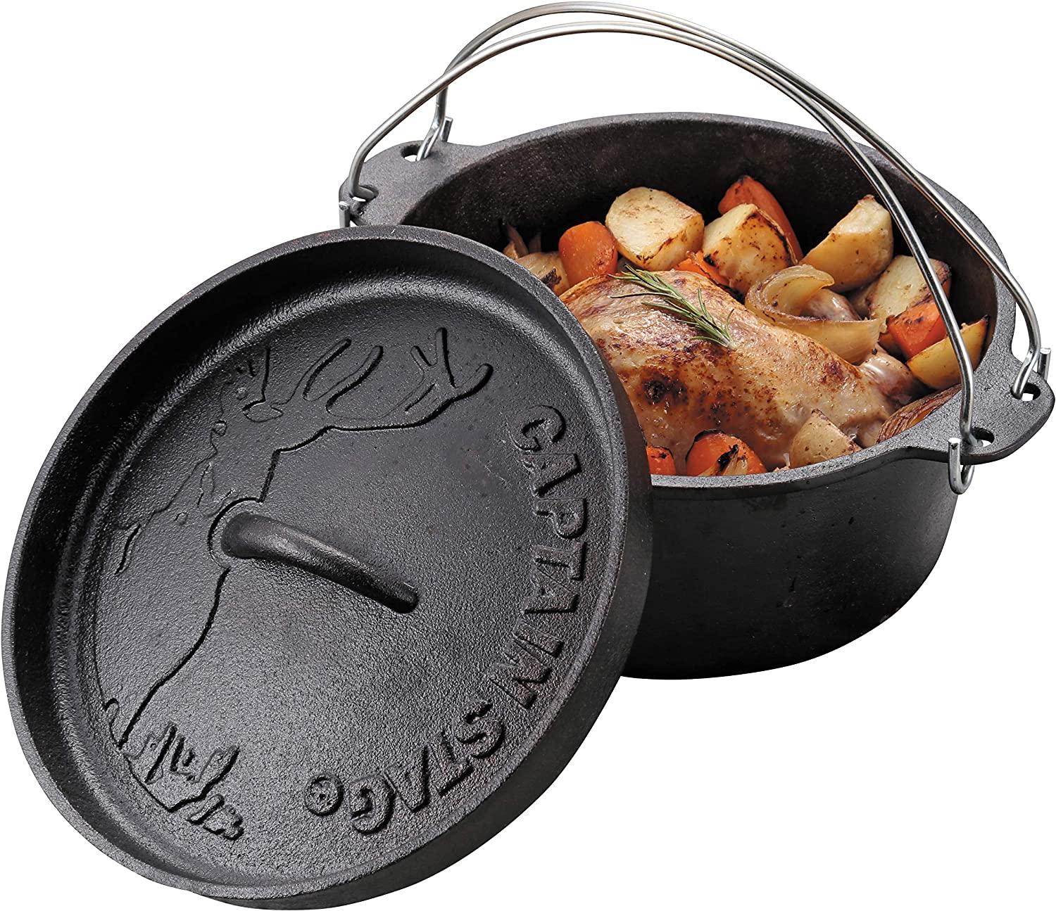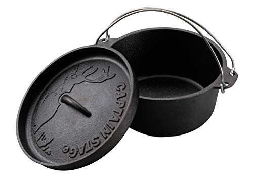 CAPTAIN STAG Camping Barbecue Dutch Oven UG-3061, Cast Iron, No Seasoning Required