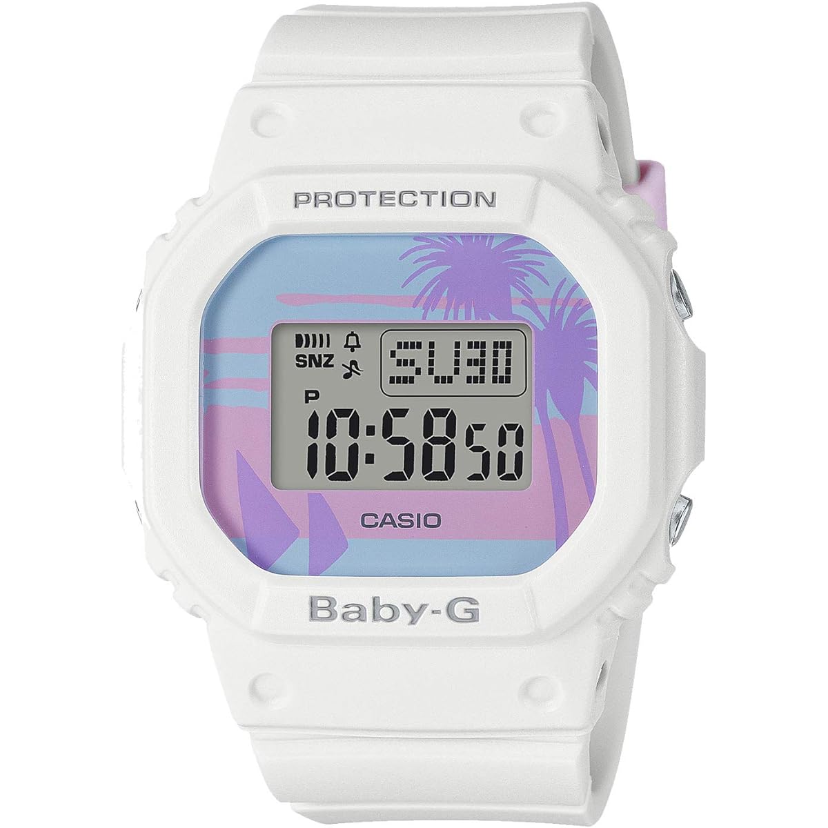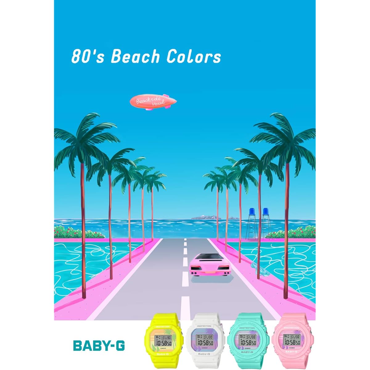 BABY-G, a casual watch for active women, introduces ``80s Beach Colors,'' designed with the image of the American West Coast in the 1980s. The base model uses the standard BGD-570 and BGD-560. BGD-570 is colored in pastel blue and pastel pink, and BGD-560 is colored in white and yellow. The pop and colorful color scheme that was popular in the 80's creates an open atmosphere unique to summer. In addition, the face is designed with a palm tree and a sunset on the beach in retro pastel colors. The design creates a nostalgic mood reminiscent of fun summer memories and favorite landscapes. Introducing BABY-G, which expresses the retro and colorful worldview of the 80's. ●Shockproof structure ●20 ATM waterproof function ●World time: Time display in 48 cities (29 time zones) around the world, with summer time setting function ●Stopwatch (1/100 second, 60 minute meter, with split) ●Timer (set unit: 1 minute, maximum setting: 24 hours, measured in 1 second increments) ●5 time alarms (only one with snooze function)/time signal ●Full automatic calendar ●12/24 time format display switching ●Operation sound ON/OFF switching function ● EL backlight (with afterglow function) Brand introduction BABY-G is a casual women's watch brand born from G-SHOCK for active women. It has a shock-resistant structure that is resistant to shock and vibration, and is waterproof (over 10 atmospheres), making it safe for work around water or water sports, making it not only cute but also extremely practical.