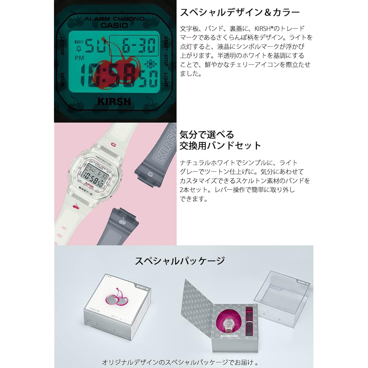 [Casio] Babygie Watch KIRSH Collaboration Model BOX Set with Replacement Band BGD-565KRS-7JR Women's White Skeleton