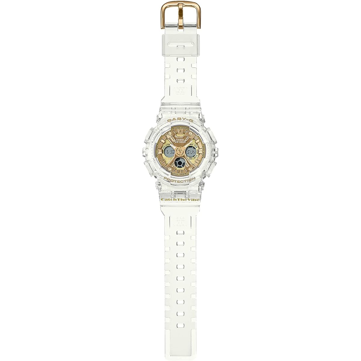 BABY-G is a casual watch for active women. The Dance Mode On series is a dance-themed series supervised by RIEHATA, a world-renowned dancer, artist, and choreographer. The base model is the popular BA-130 with its big case and men's-like design. Blue skeleton, pink skeleton, and white skeleton are used for the band colors, and metallic colors are applied to the face parts. This is a special model that interprets the hip-hop culture of the late 90's and early 2000's from the perspective of dancer RIEHATA and incorporates it into the design. The message "Catch The Vibe" is printed on the band part. BABY-G has an exciting design that will put you in a dance mode. ●Shockproof structure ●10 ATM waterproof function ●World time: 48 cities around the world (29 time zones, daylight saving time setting function included) + UTC (Coordinated Universal Time) time display ●Stopwatch (1/100 second, 24 hour meter, with split clock) )●Timer (set unit: 1 minute, maximum setting: 24 hours, measured in 1 second increments)●5 time alarms (only one with snooze function)・time signal●Full automatic calendar●12/24 hour display switch● Operation sound ON/OFF switching function ●LED light (with afterglow function)