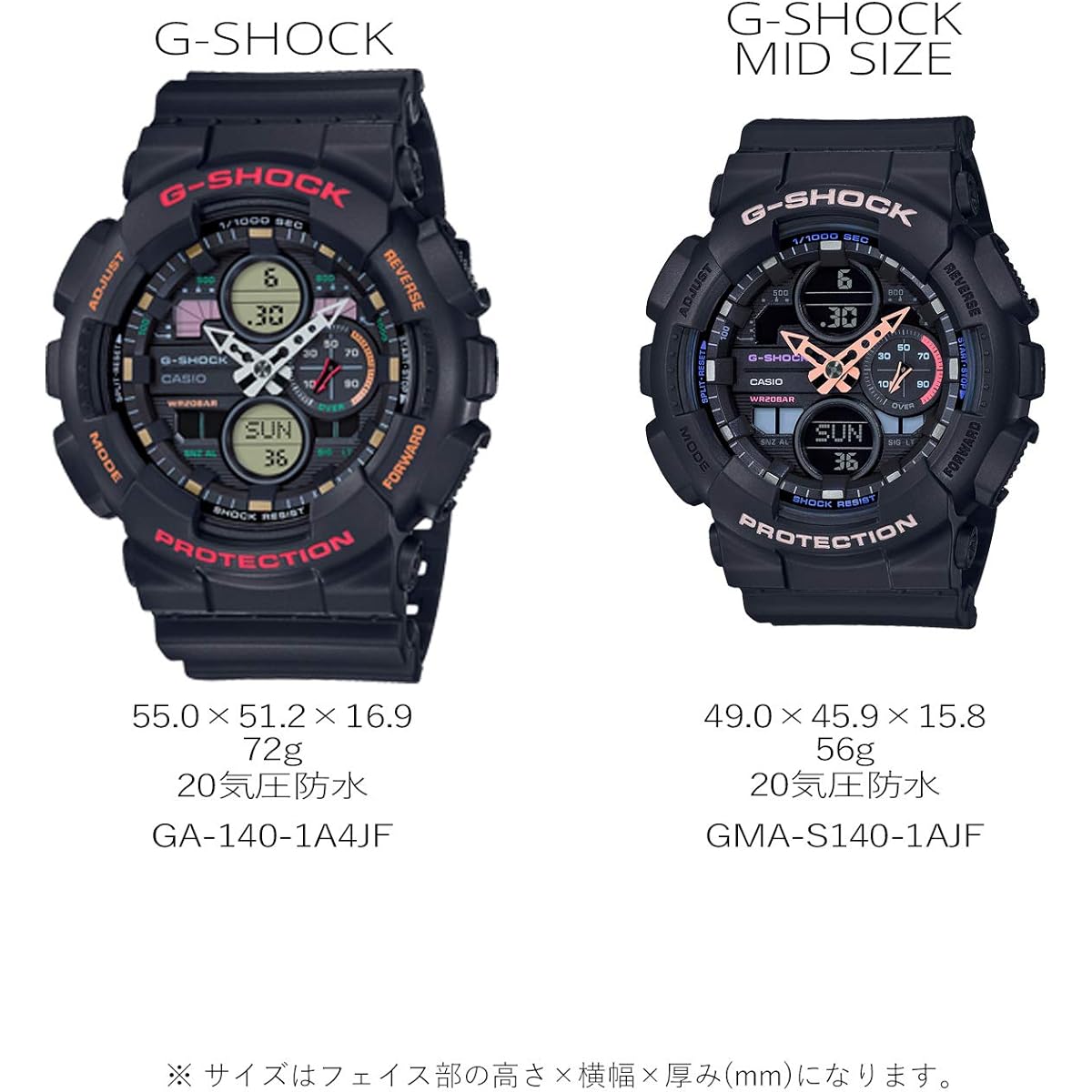 From the toughness watch G-SHOCK, which has continued to evolve in pursuit of insatiable strength since its release in 1983, a mid-size model featuring a size slightly smaller than usual will debut. The base model is a mid-sized version of the popular digital/analog combination model "GA-140", and the inside of the dial is finished with bright and pop colors. The birth of a small G-SHOCK that is perfect for youth culture that follows fashion trends. ●Shockproof structure ●Magnetic resistant watch (JIS 1st class) ●20 ATM waterproof function ●World time: 48 cities around the world (29 time zones, with summer time setting function) + UTC (Coordinated Universal Time) time display, home time city switching function ●Stopwatch (1/1000 seconds, 100 hours meter, speed measurement function (MAX1998unit/h, 2unit/h units), lap/split measurement switching ●Timer (set unit: 1 minute, maximum set: 24 hours, 1 second unit) measurement, auto repeat) ●5 time alarms (only one with snooze function)/time signal ●Full auto calendar ●12/24 hour display switching ●LED light (auto light function, afterglow function, afterglow time switching (1.5 seconds/ GSHOCK has created a new concept of toughness in watches.It all started with the developer's passionate belief in creating a watch that would not break even if dropped, and a reckless challenge that overturned common sense at the time. .Over 200 prototypes were repeated, and it took about 2 years to complete the impact-resistant structure.This was the birth of the technology that plays the core of Tough.Since then, GSHOCK has continued to evolve without end. We have continued to pursue even tougher structures, materials, and functions in all aspects.