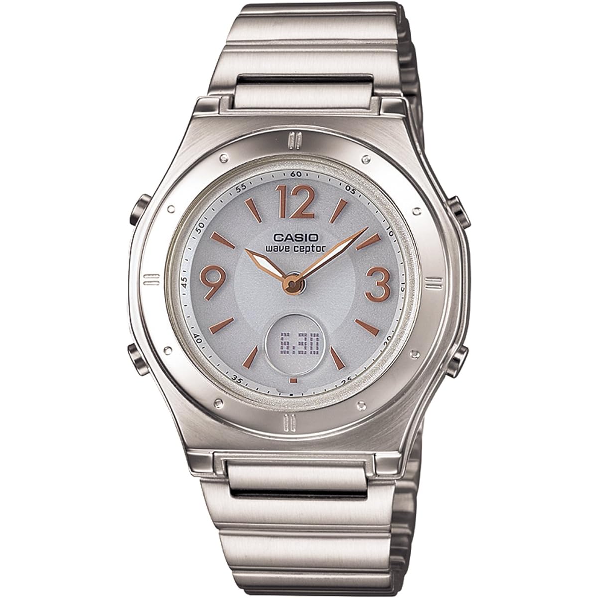 A solar radio-controlled watch for women with a casual design that can be used easily for both on and off occasions. The radio wave reception function is the latest multi-band 6 that supports standard radio waves in the United States, Europe, and China as well as Japan. In addition, the LCD part at 6 o'clock is equipped with convenient functions such as the day of the week and date, as well as world time and timer. The metal band has a free buckle that allows for easy size adjustment. Brand Introduction CASIO's radio clock series WAVE CEPTOR has a complete lineup to meet your needs.
