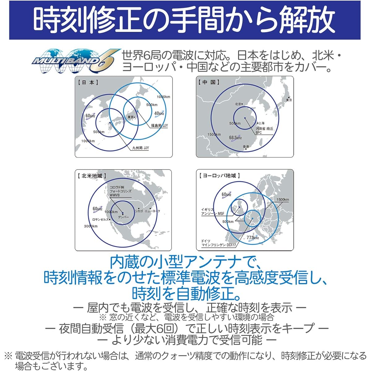 This is a solar radio-controlled watch for women that can be easily used for both on and off occasions. The radio wave reception function uses multi-band 6, which supports standard radio waves in the United States, Europe, and China as well as Japan. In addition, the liquid crystal display at 6 o'clock displays the day of the week and date, as well as convenient functions such as world time and timer. The plastic band has a casual look, giving it a feminine look. Brand Introduction CASIO's radio clock series WAVE CEPTOR has a complete lineup to meet your needs.