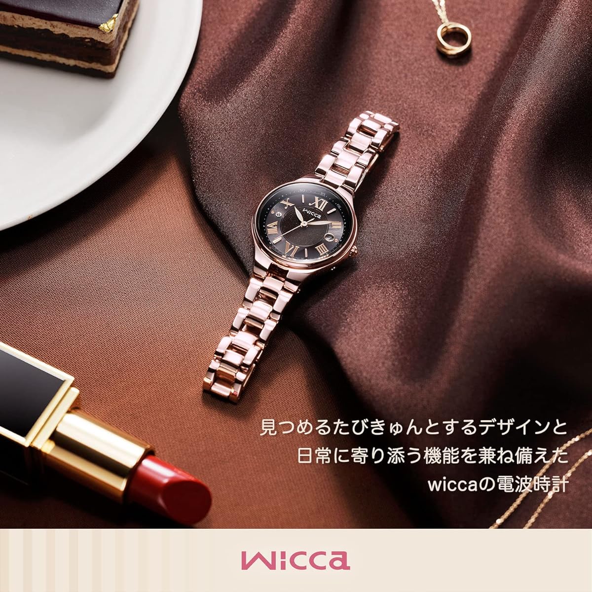 The pink gold x brown dial is inspired by a bitter chocolate cake opera, which is associated with "bittersweetness." The mature color scheme and glitter inspired by gold leaf express the bittersweet emotions that can be felt at times.