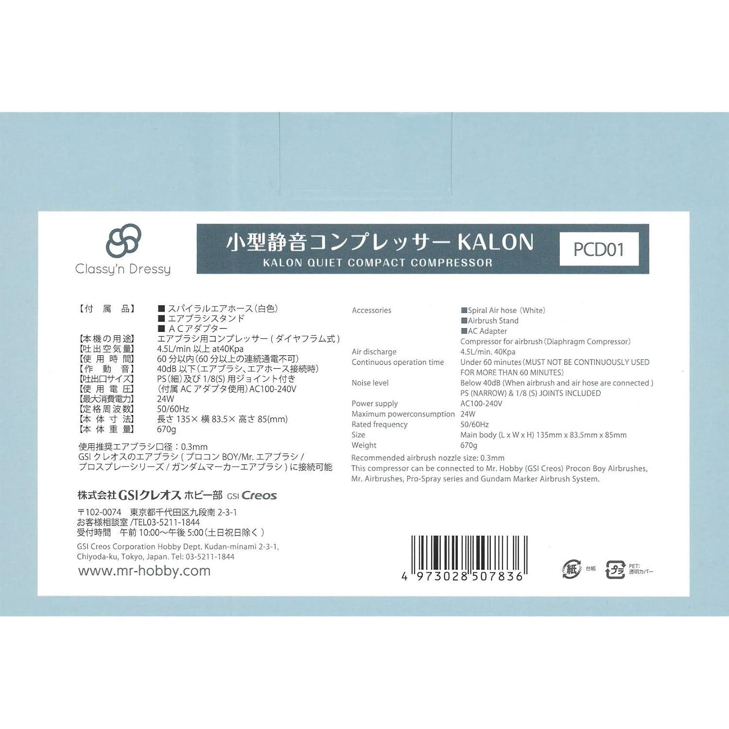 The compressor with a simple design that is easy to reach by anyone. We realize the product concept that combines sufficient airflow and quiet operation for airbrushing. Can be used at home and abroad without a transformer. Product Series: Compressor Material: Caron Body, PBT, Air Hose, EVA, Airbrush Stand, Polypropylene, Air Hose: 14.2 inches (360 mm), Extended: 11.4 inches (2900 mm), Product Size: Length 5.3 inches (135 mm) x Width 3.3 inches (83.5 mm) x Height 3.3 inches (85 mm), Weight: 2 mm), Weight: 2 lbs (6 g), Discharge Air Hose/40 lbs (670 kg) When connected with the brush) Made in Japan. Spiral air hose (white), airbrush stand and AC adapter included. The PCD01 does not come with an airbrush.
