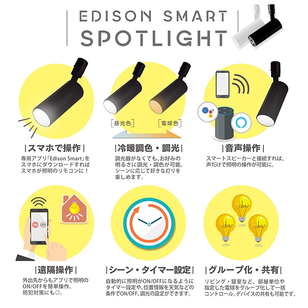 Edison DST-SL01WH LED Smart Spotlight for Duct Rails, White, Set of 2, Integrated LED, Dimmable, Toning, Smart Bulb, Not Compatible with Dedicated Remote Control
