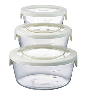 HARIO SYTN-2518-OW Heat Resistant Glass Storage Containers, White, Made in Japan, Set of 3