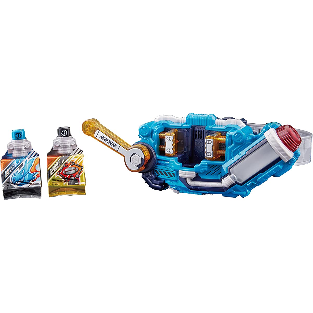 From Kamen Rider Build, the Transformation Belt DX Scrash Driver appears! Lower the grip and crush the Scrash Jelly to transform! Lower the grip again to activate the special move! Comes with Dragon Scrash Jelly and Robot Scrash Jelly. Transform into Kamen Rider Close Charge with Dragon Scratch Jelly! Transform into Kamen Rider Grease with Robot Scratch Jelly! Batteries used: AAA x 3 (sold separately)