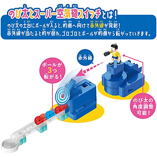 Introducing Koroga Switch Doraemon Deluxe Kit Super Air Gun Switch! Combine the course with the secret tool switch and block and send the ball to the Doraemon goal! Enjoy the "Nobiita and Super Air Gun Switch" that you can shoot away targets. is the first electronic switch equipped with infrared rays. Other popular secret tools such as Time Furoshiki and Esper Hats are also switched into a switch. Delivers balls to Doraemon Safety Warning N/A