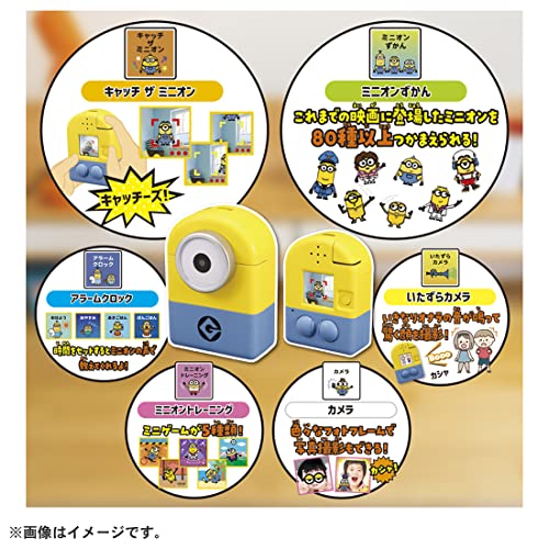 Product introduction Find Minions on your camera and catch it! The first LCD toy in Minion history, with camera function. ■ You can grab more than 80 different minions! ■ Minions that you get caught can be registered with the Minion Zug! Some Minions can't grab without a password!? ■ There are many other modes. You can take photos in camera mode or take photos with Minion photo frames! Holds up to 50 photos. ■ Set the timer! There is also a prank camera mode that allows you to capture all of your surprises by suddenly clinging minions and masturbation sounds. ■There are 5 kinds of mini games that can be played with Minions! Shake the main unit or hit the buttons in consecutive play. ■With the alarm clock function, you can set the timer to tell you the time with the voice of Minions. Set Contents: Finding and Catches Camera Mi nion Unit (1), Instruction Manual (1), (English language not guaranteed) Safety Warning N/A