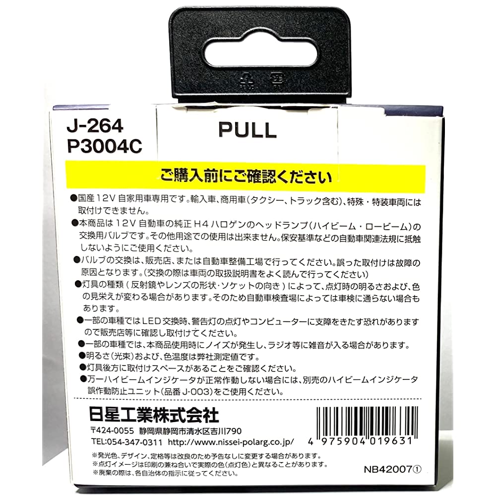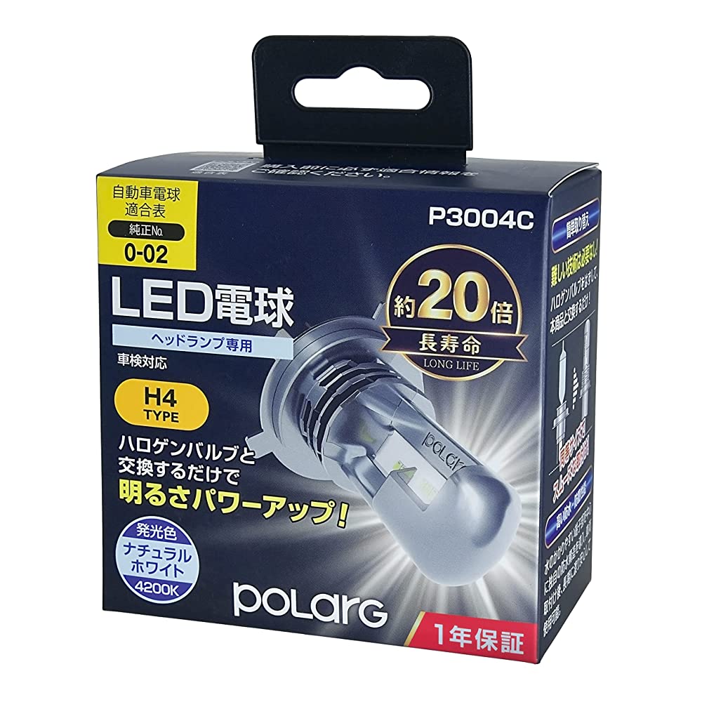 NISSEI Industries POLARG LED Bulb for Headlamps, 12 V, H4, 4,200 K, 3,000/2,800 lm, Pack of 2, Fanless, Equivalent to Halogen Bulbs, Pong Included, High Luminous Flux Maintenance Rate, J-264 P3004C, Road Transport Vehicle Act Compliant