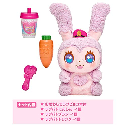 Product introduction An action plush toy that can be used to care for Love Patrina's cute companion "Love Pyoko"! It feels like it jumped out of the drama! You can enjoy playing with Pyoko Pyoko! Every time you move your ears, Love Pyoko will say "Pyoko", "Pyoko", and will chat with you in various ways! If you give her a drink or a Love Pato carrot, she will be very happy! Also, if you register your name, Love Pyoko will call your name! (1), Love Pat Drink (1), Love Pat Brush (1), Safety Warning N/A