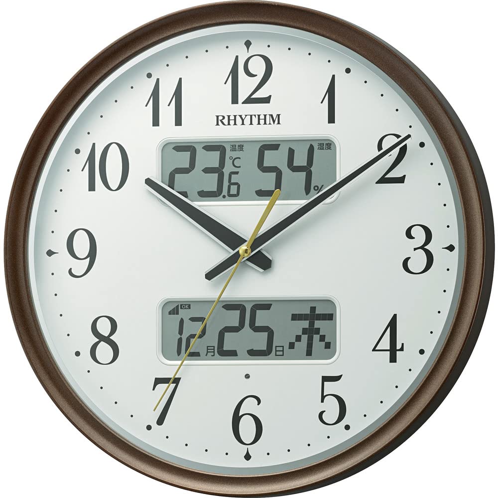 RIZUMU Watch Industry (Rhythm) Wall Clock Brown 34x5.3 CM Atomic Analog Continuous Second Hand Temperature Humidity Calendar Automatic Light 8Fya04SR06