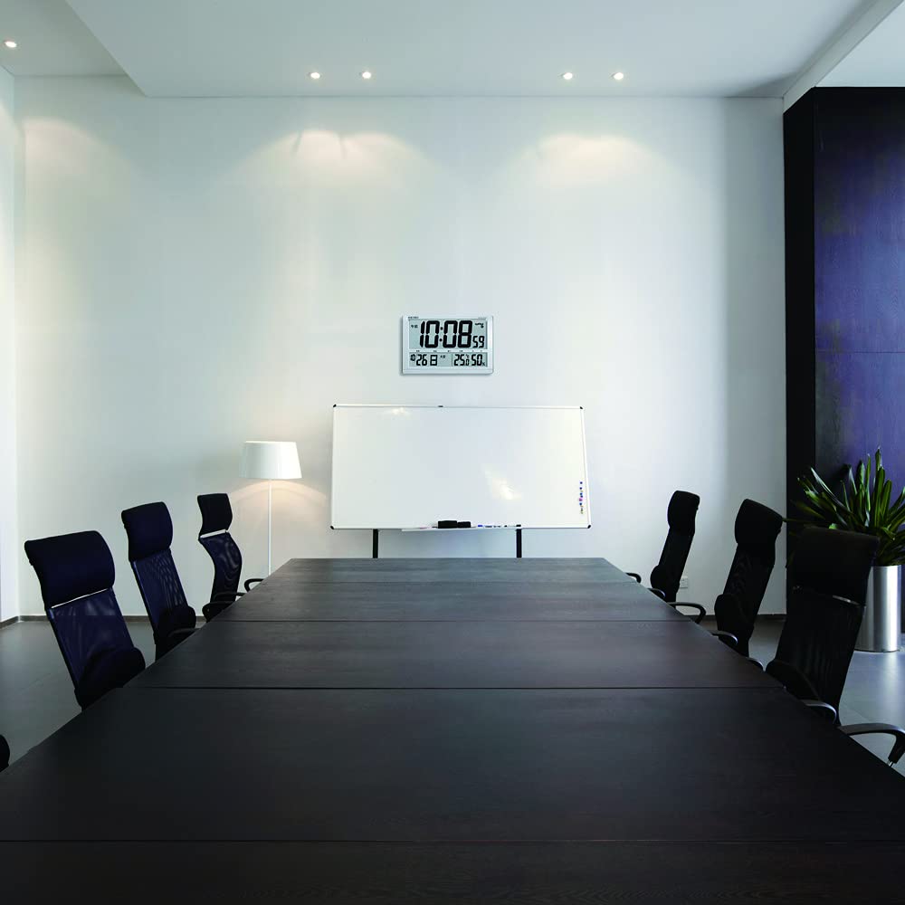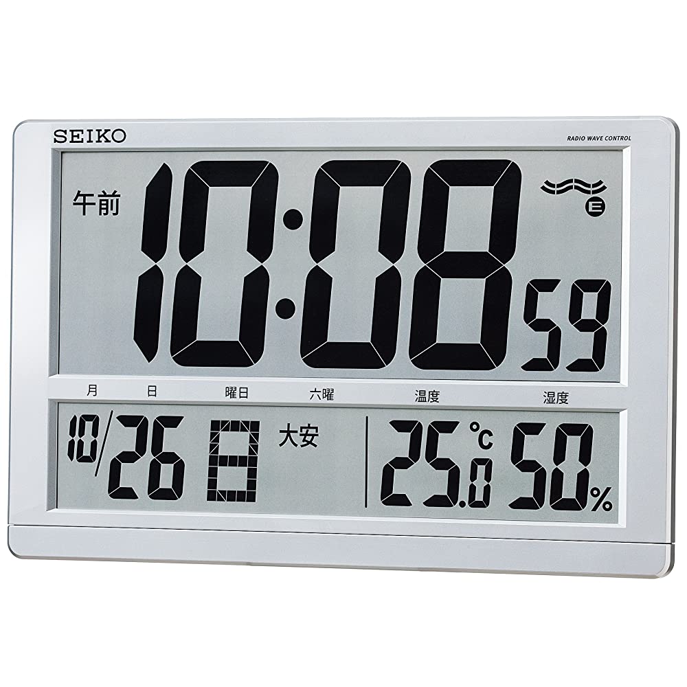 Seiko SQ433S Seiko Wall Clock, Table Clock, Multi-purpose, Radio Wave Digital, Calendar, Rokuday, Temperature and Humidity Display, Large, Silver, Metallic