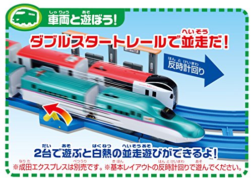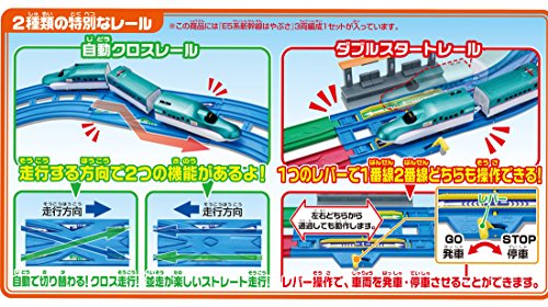 ■ Introducing a basic set of E5 Shinkansen Hayabusa with fun automatic switching action of running routes. ■ A rail set that can be enjoyed quickly with a double line layout. ■ The E5 Shinkansen is 2 speeds, connected specifications. ■ Double start rails allow you to operate the GO-STOP between two lines at the same time. ■ Automatic cross rails automatically replace track between two tracks when left to right. When you drive right to left. ■ Use 2 powered vehicles and move counterclockwise to enjoy a double line of motion. Combine with the Super Speed Doctor Yellow set (sold separately) to enjoy the fun of a group of play.