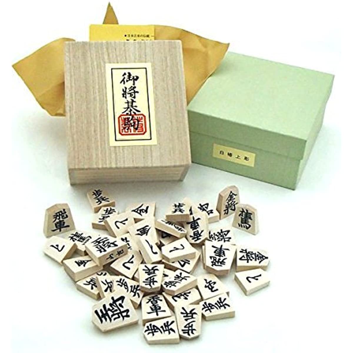Tendo Shogi Pieces Official Font, White Camellia Top Carved in Paulownia Box