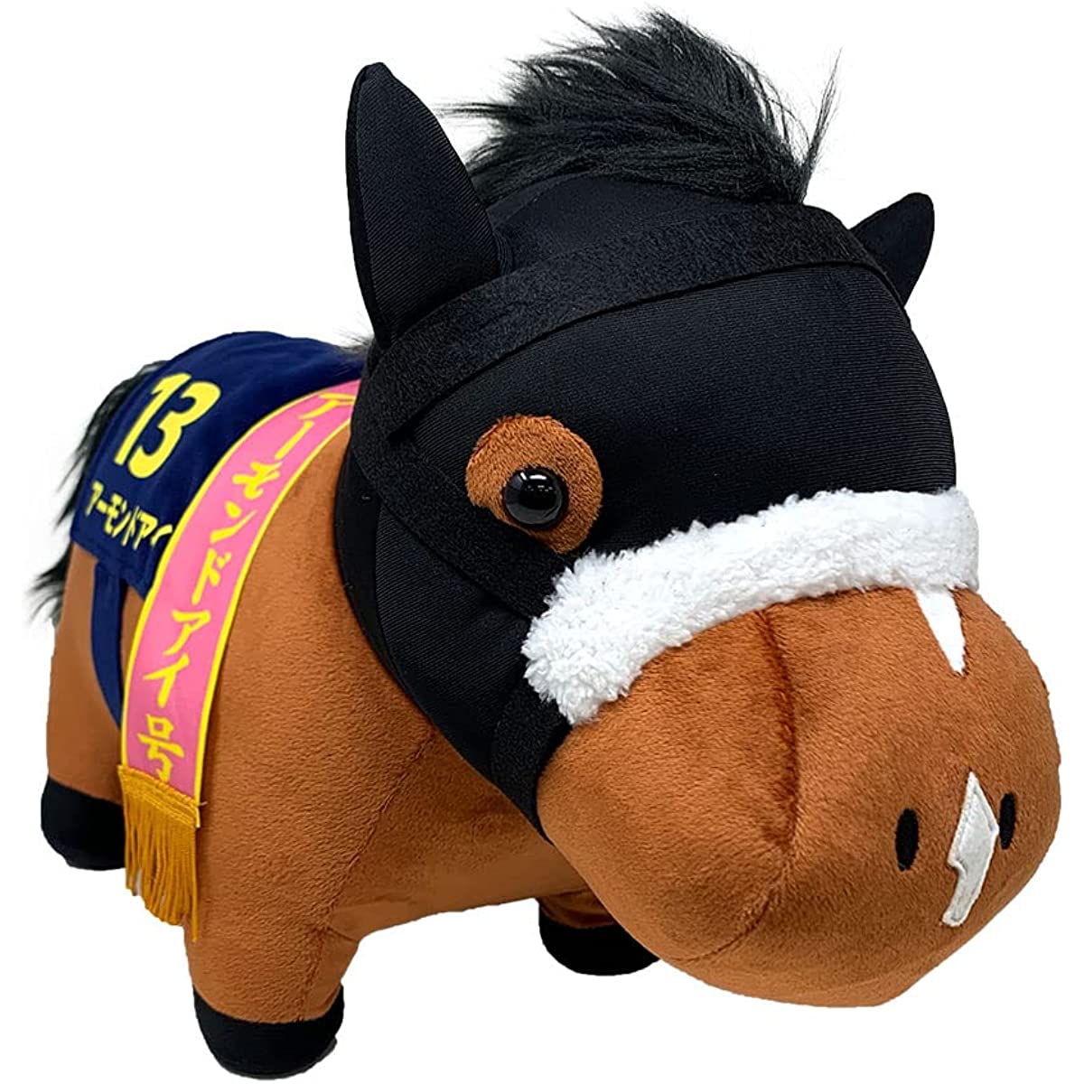 The popular race horse "Almond Eye" is now available as a big size plush toy. Size (H x W): Approx. 13.8 x 17.7 inches (35 x 45 cm).