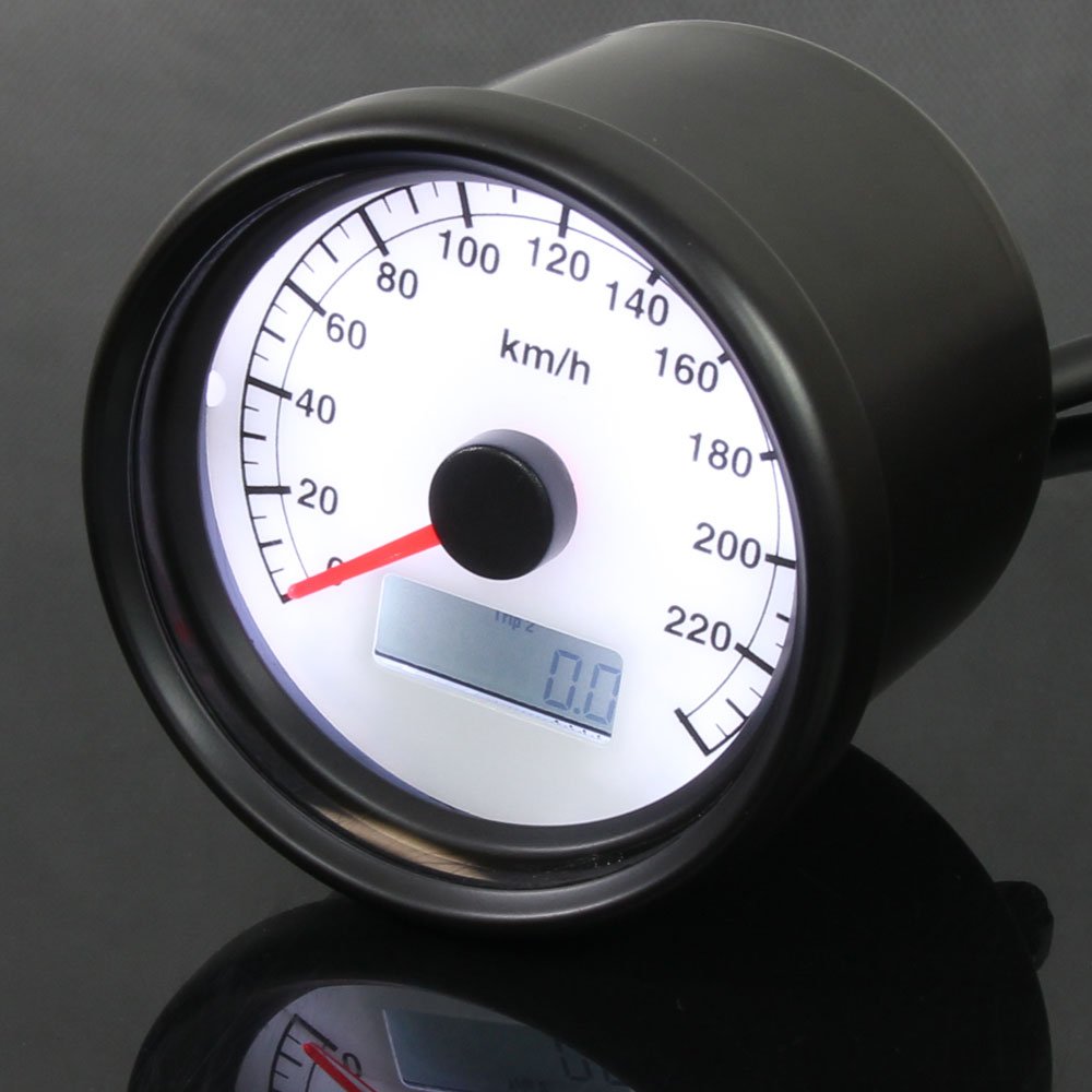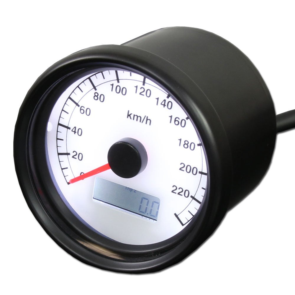 Universal Motorcycle, Mechanical, 240 km/h, 60 mm LED Speedometer, Black Body/White Panel