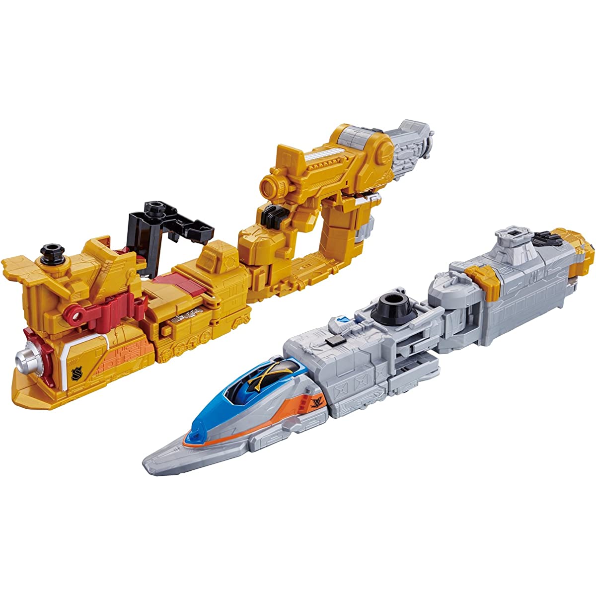 Kaitou Sentai Lupinranger VS Keisatsu Sentai Patranger introduces the VS Vehicle Series Connected Transformation DX X Changer! A transformation item for a new warrior who transforms into two forms by himself. Two X-Trains, Gold and Silver, combine into a gun in two modes, and become a transformation item for Lupine X and Patren X. You can also enjoy the transformation mode selection by turning the barrel and the sortie combination sound. Combined with the separately sold DX X Train Thunder and Fire to form the X Emperor, Lupine Kaiser, Pat Kaiser, Good Striker and transcendence combination, Good Kurkaiser VSX completed! Batteries used: LR44 x 2 (included) )