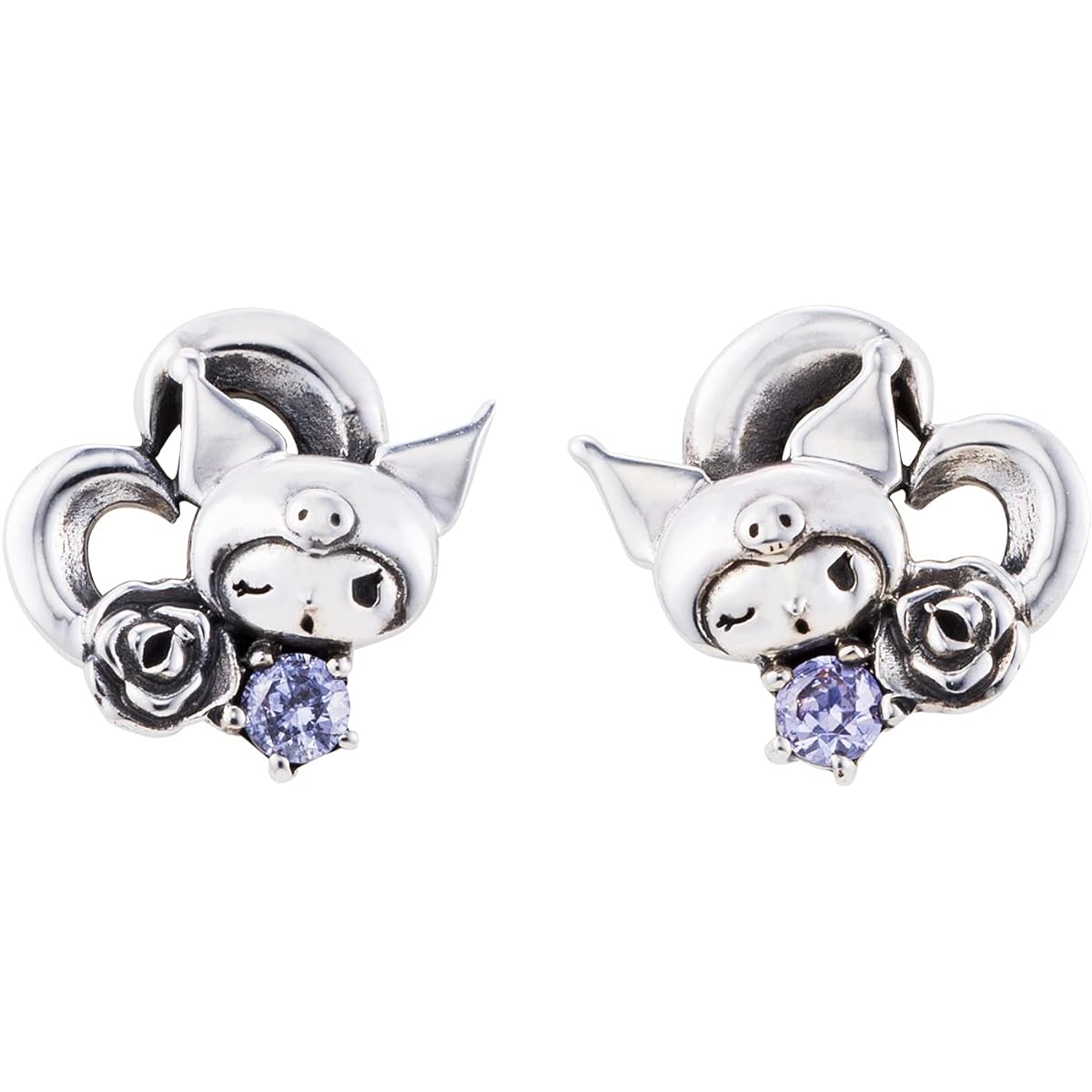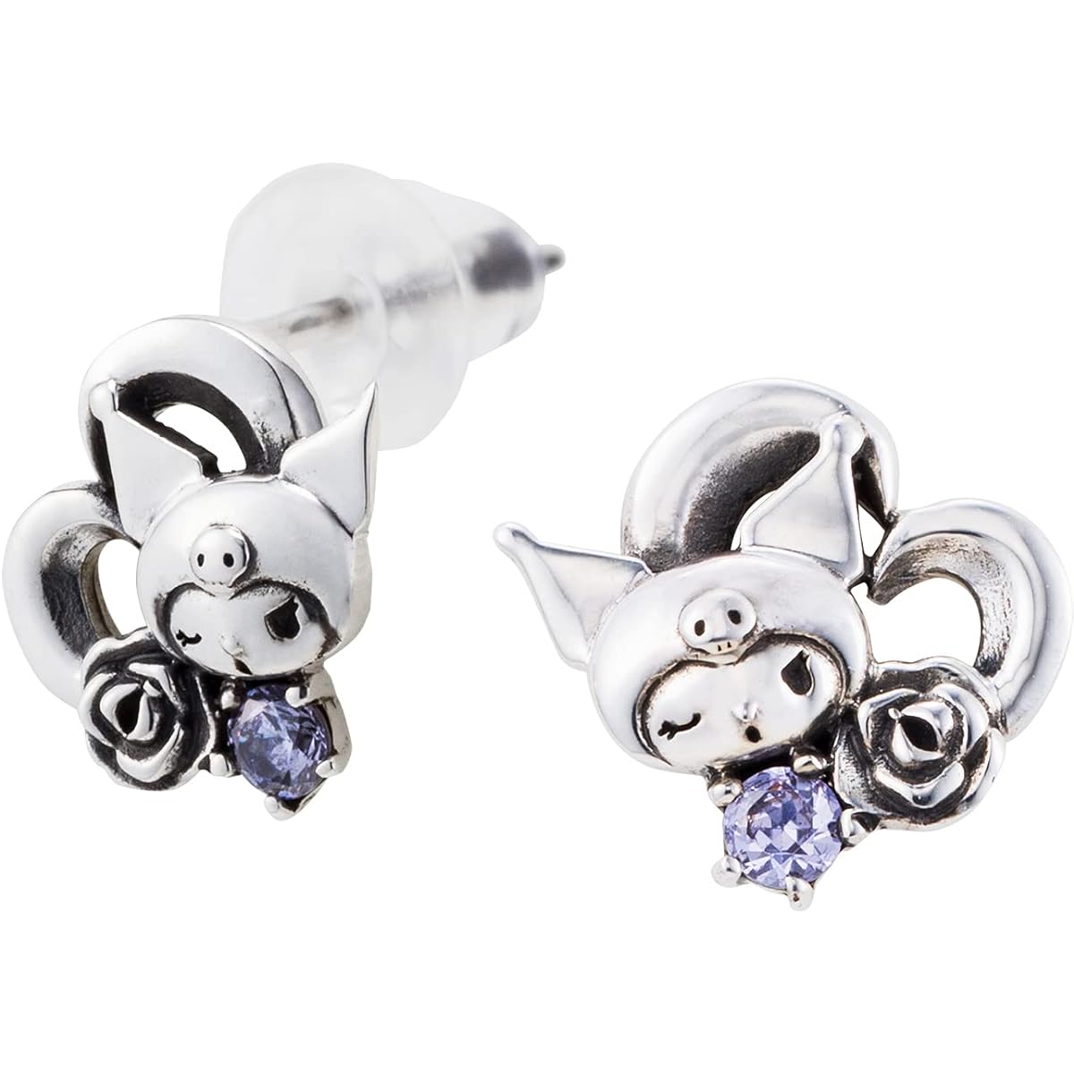 [White Clover] Kuromi Earrings Silver 925 Cubic Zirconia Oxidized Heart Flower KUROMI Sanrio Characters SAKU-P005