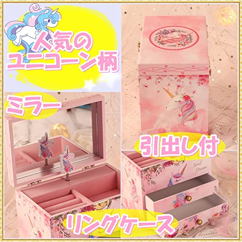 Wooden Kids Music Box Accessory Case Jewelry Box Girl with Mirror Toy Box (Unicorn Pink)