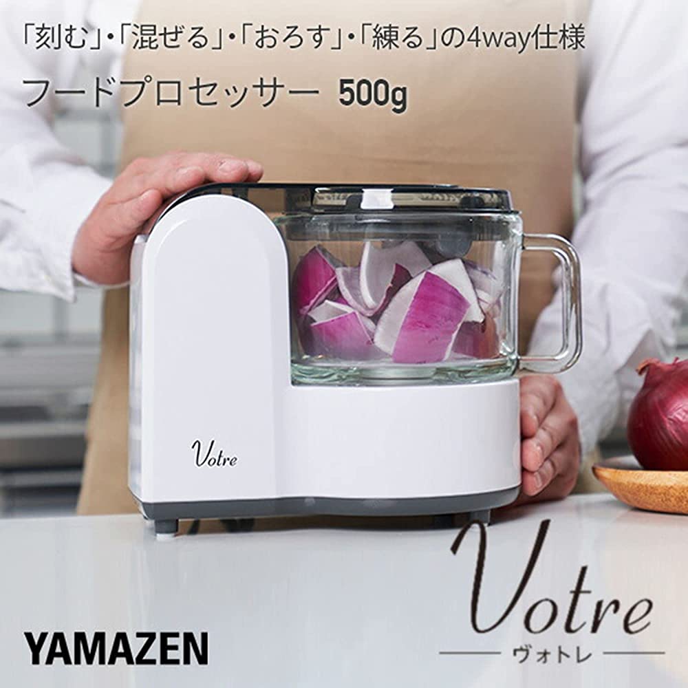 Yamazen MFC-G501(W) Food Processor 4-in-1 (Chop/Mix/Grate/Knead), Maximum Cooking Capacity 17.6 oz (500 g), Easy Operation, Mixer, Electric Grater, Compact Storage, White