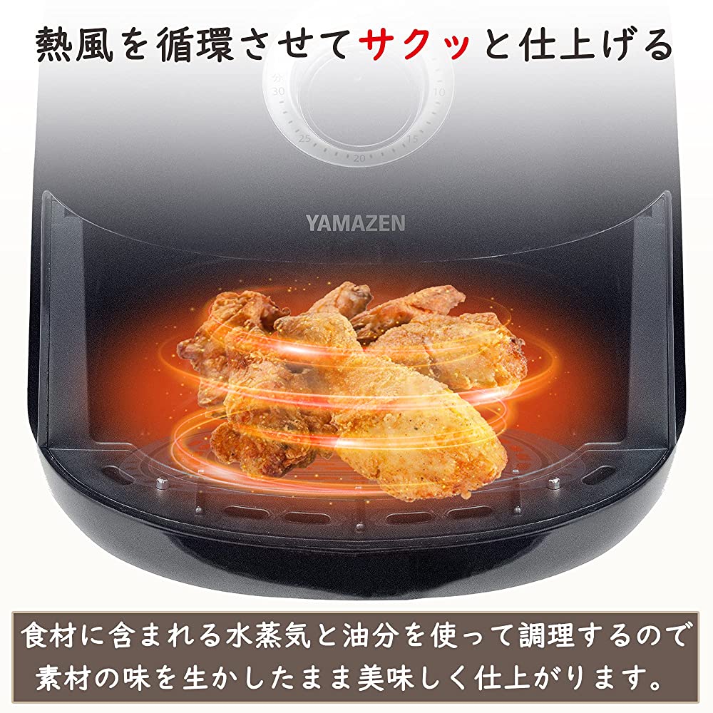 Yamazen YAF-C120(B) Non-Fryer, 0.6 gal (2.2 L), Electric Fryer, For 1 to 3 People, Oil-Free, Air Fryer, Healthy Cooking Without Oiling, Tabletop, Recipe Book Included, Black